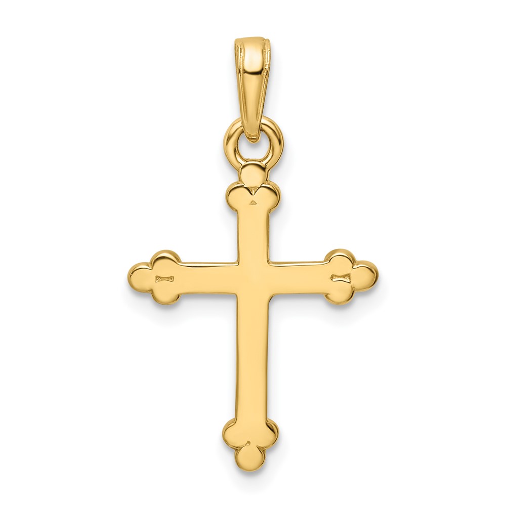 14K and White Rhodium Diamond-cut Budded Cross Pendant