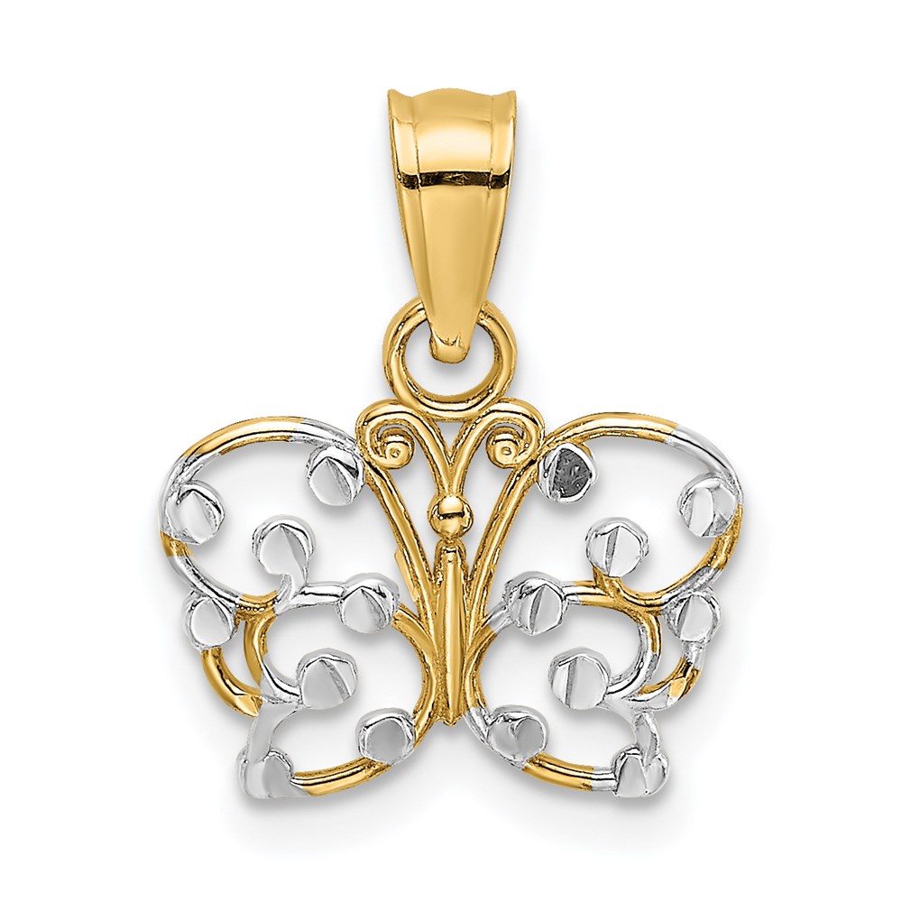 14k and White Rhodium Diamond-cut Butterfly Charm