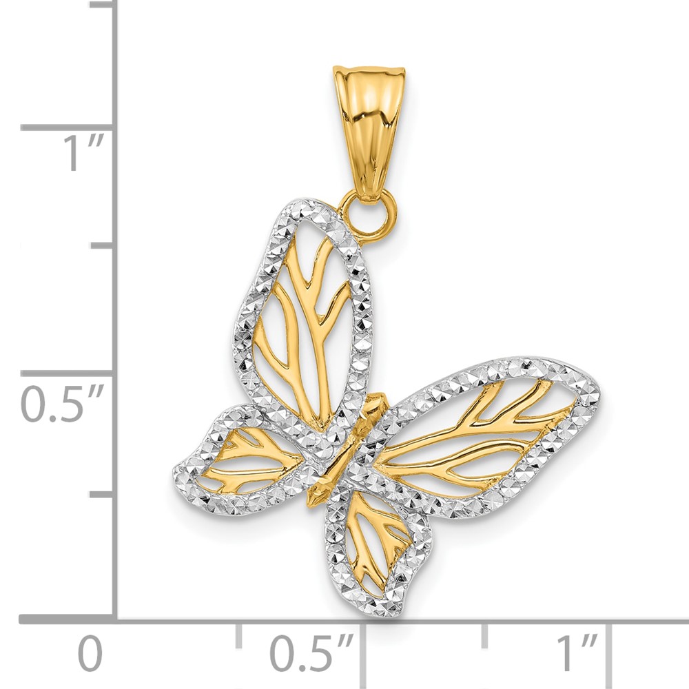 14K and White Rhodium Diamond-cut Butterfly Pendant