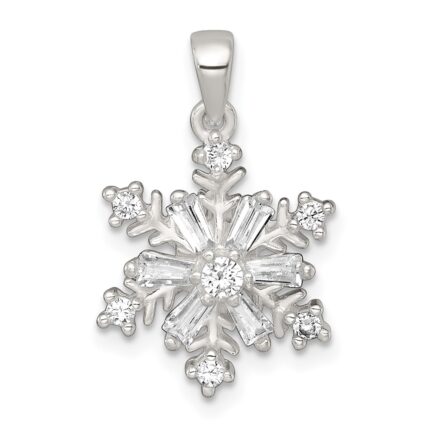 14K and White Rhodium Diamond-cut Circle Snowflake Charm