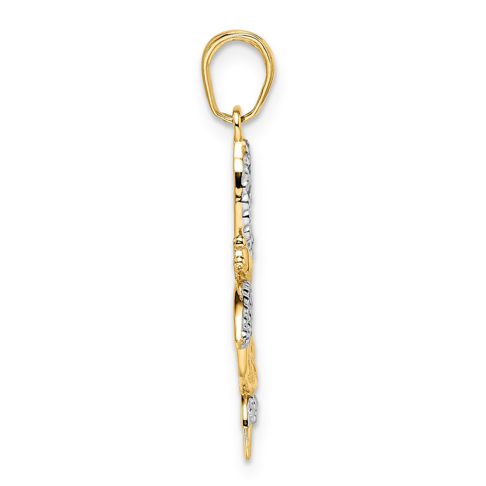 14k and White Rhodium Diamond-cut Dragonflies Pendant