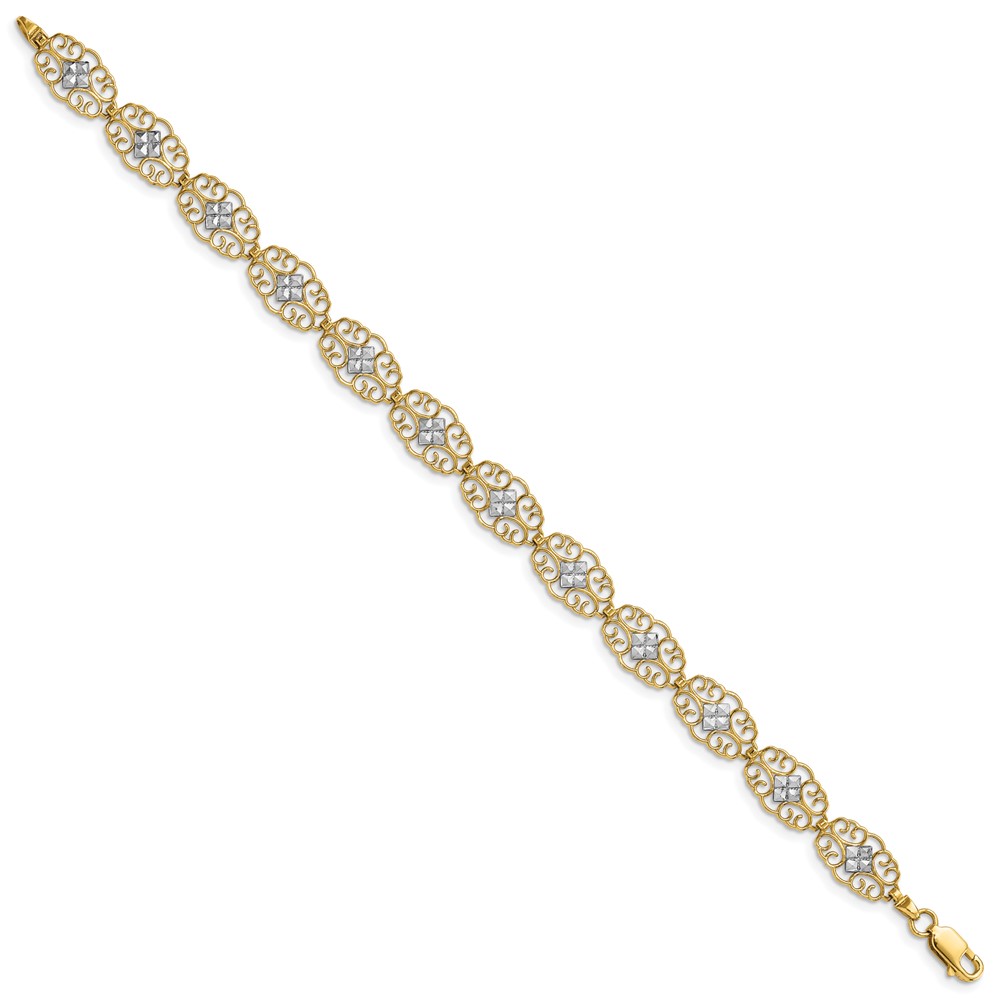 14k and White Rhodium Diamond-Cut Fancy Filigree 7.25 inch Bracelet