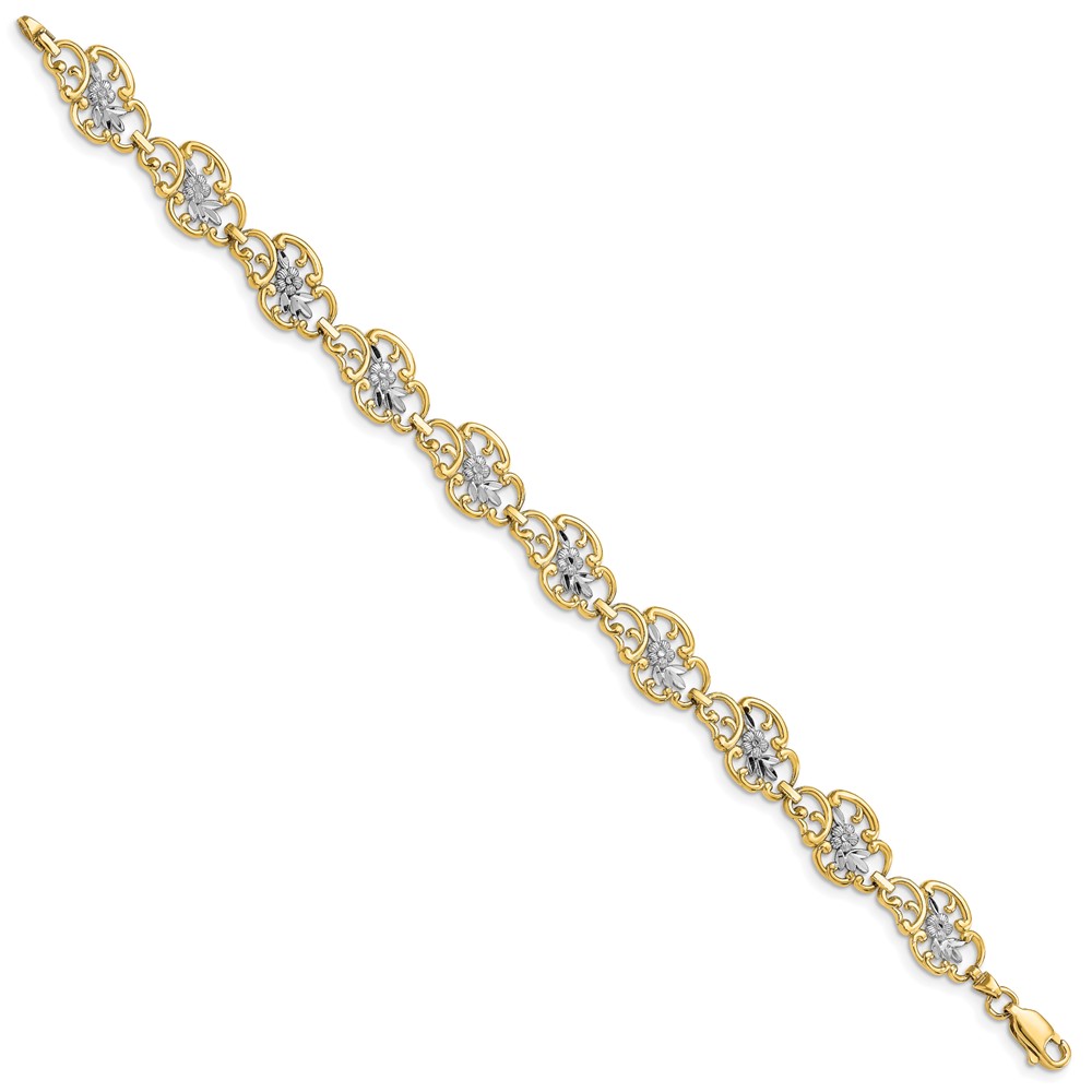 14k and White Rhodium Diamond-Cut Fancy Floral Filigree 7.25 inch Bracelet