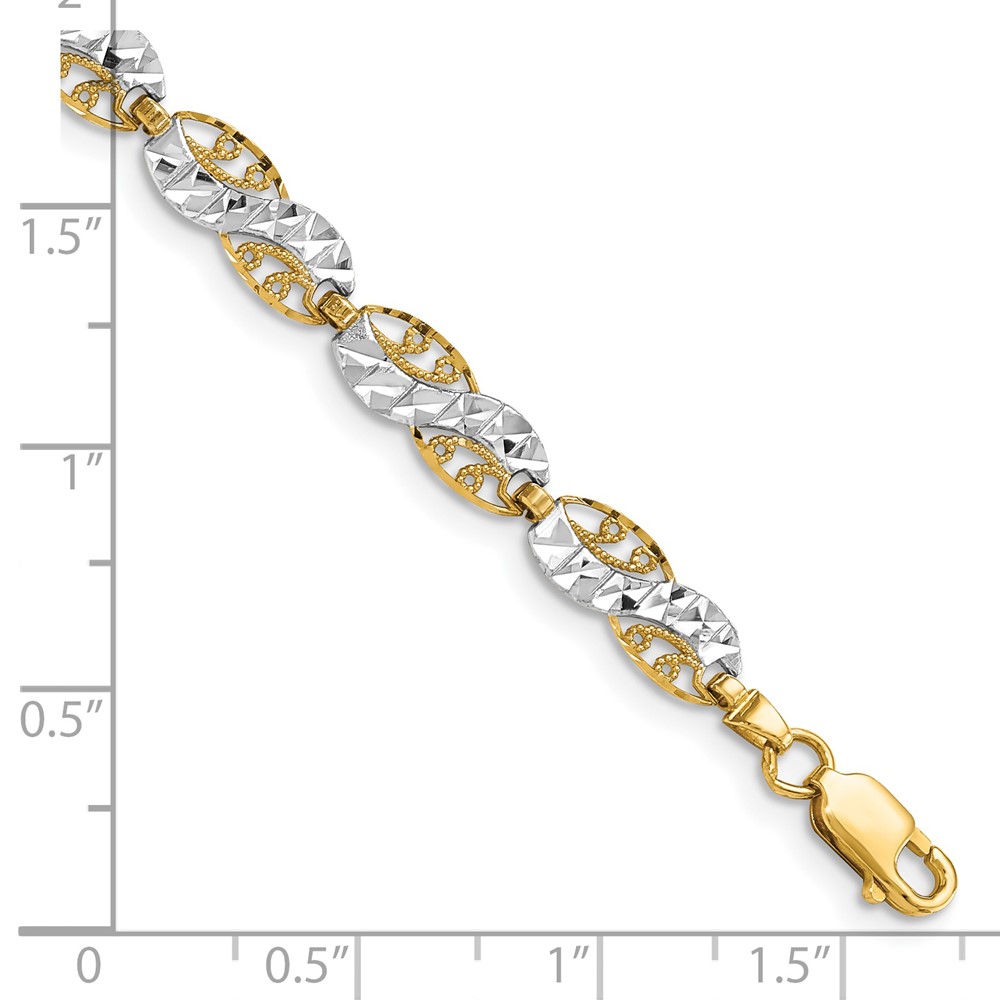 14K and White Rhodium Diamond-Cut Filigree Link 7.5 inch Bracelet