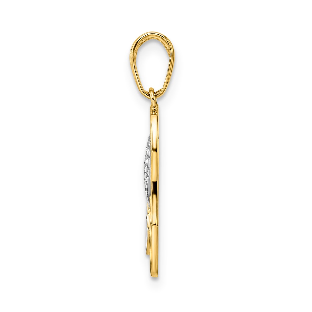 14k and White Rhodium Diamond-cut Heart Hamsa Pendant