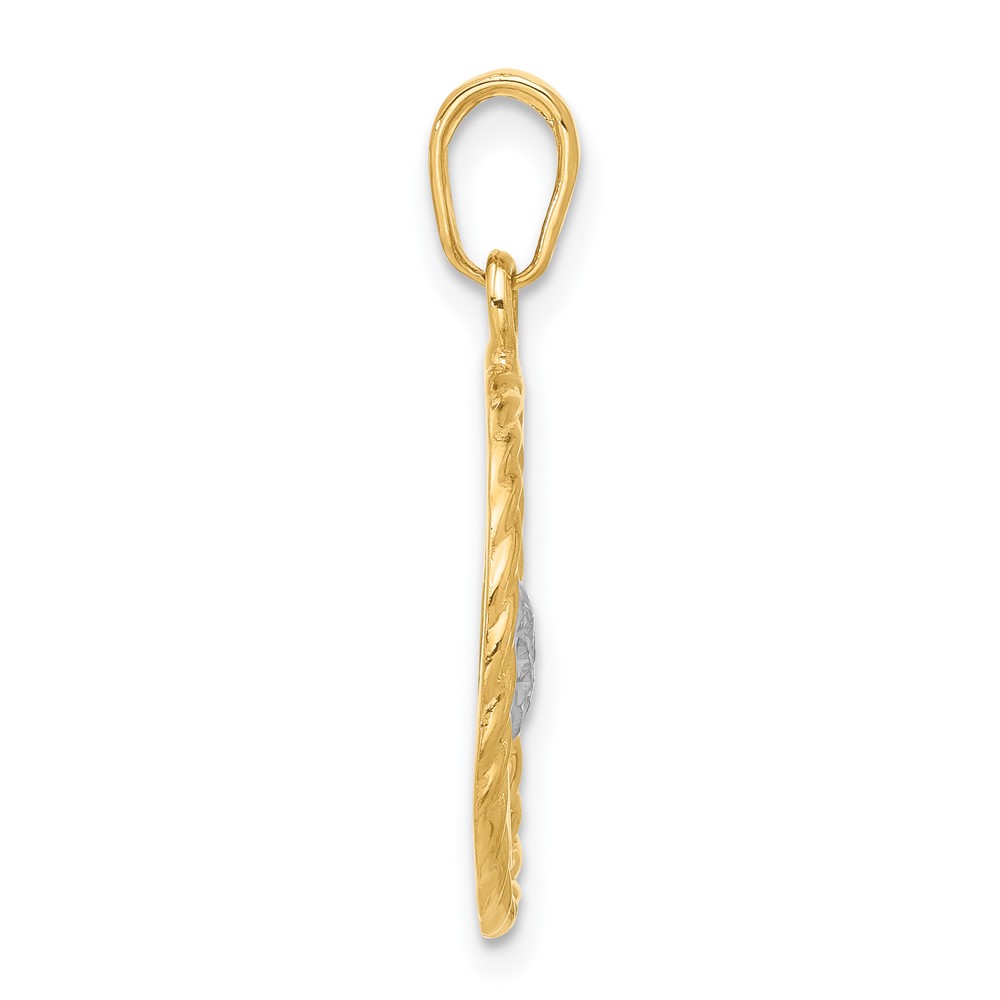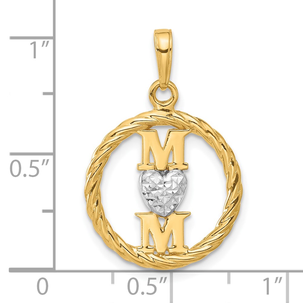 14k and White Rhodium Diamond-cut Heart MOM Pendant