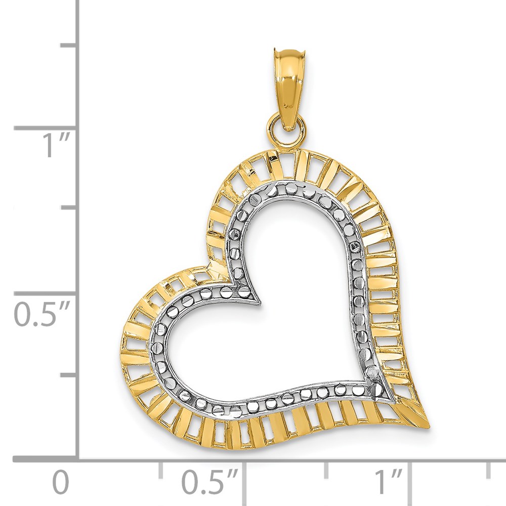 14k and White Rhodium Diamond-cut Large Tilted Heart Charm