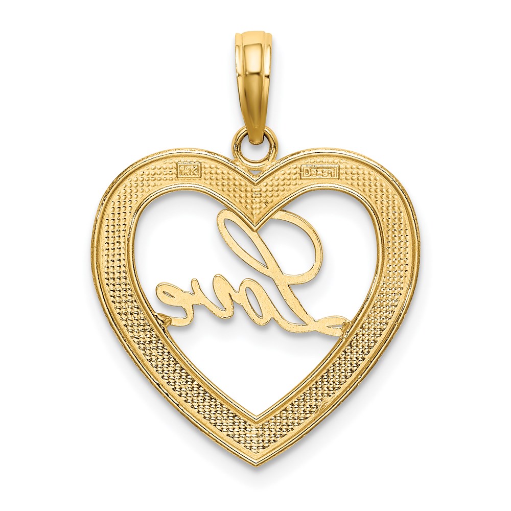 14k and White Rhodium Diamond-cut LOVE Heart Pendant