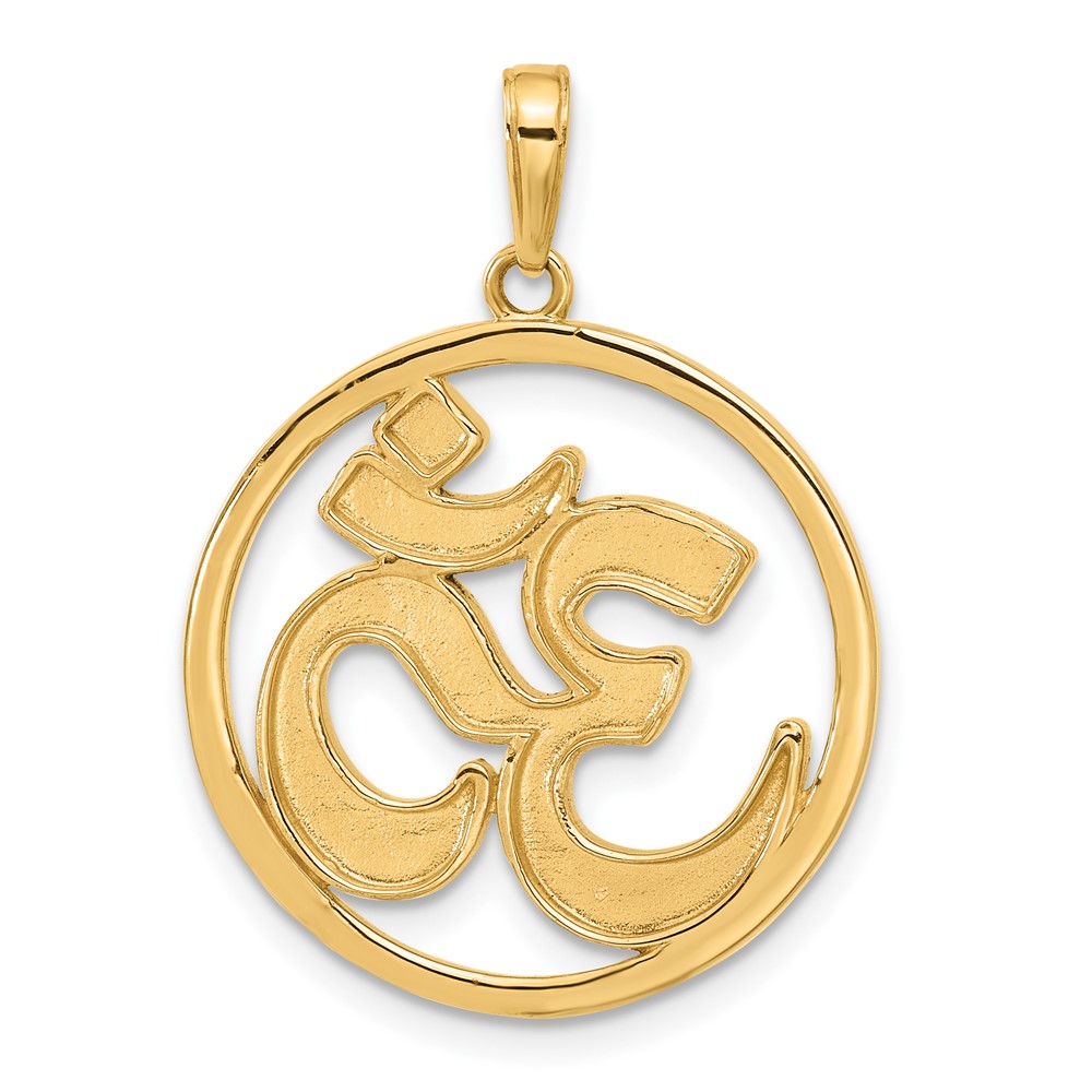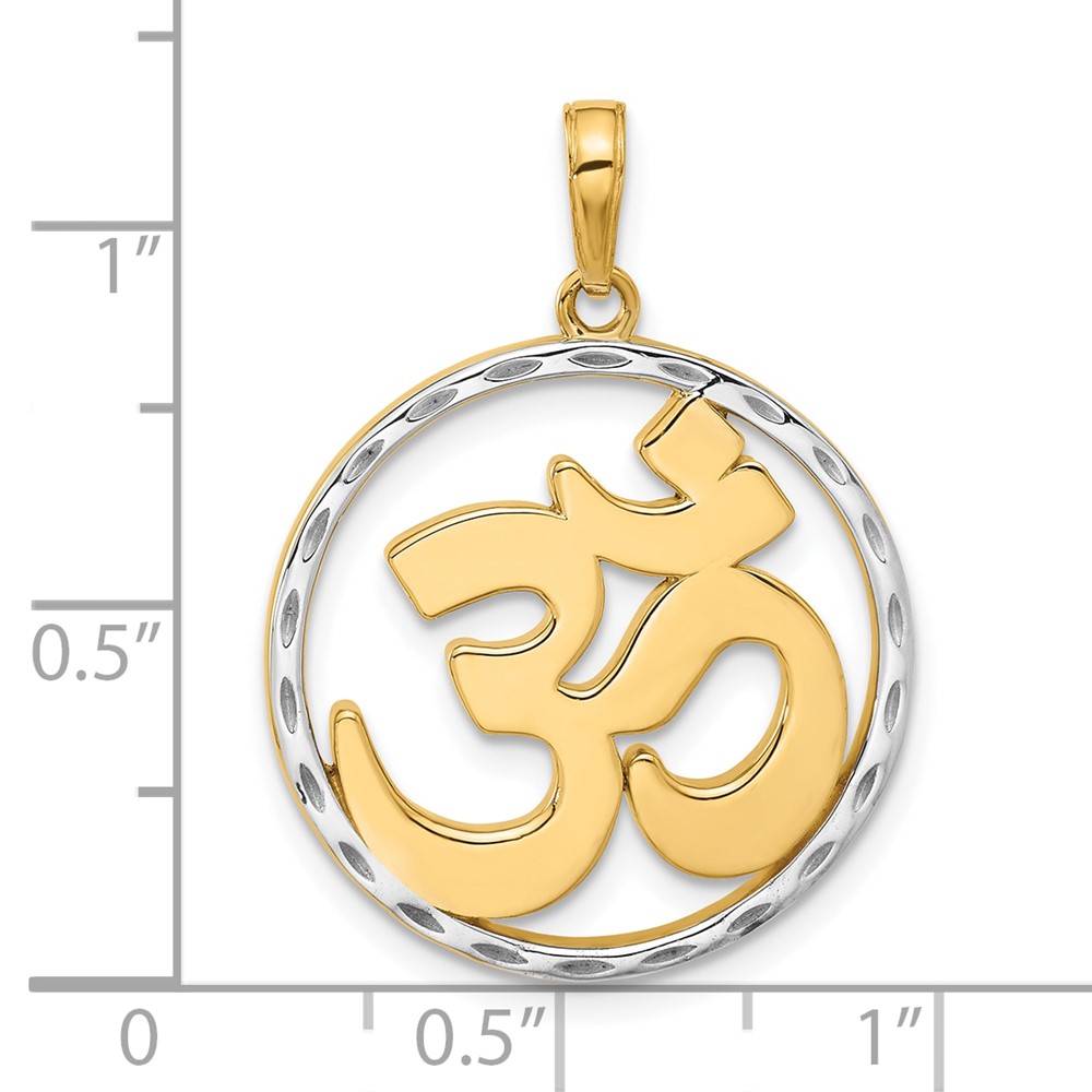 14K and White Rhodium Diamond-cut Om Symbol in Circle Pendant