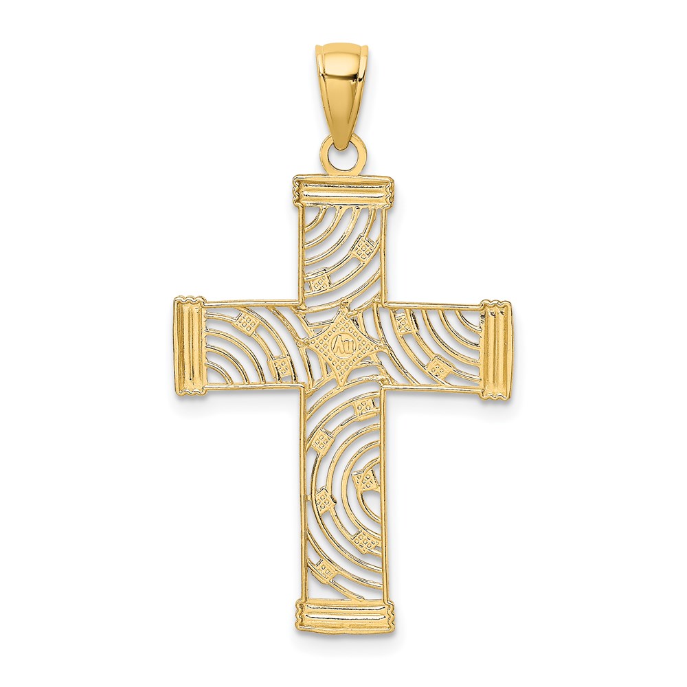 14K and White Rhodium Diamond-cut Stars Cut-Out Cross Charm