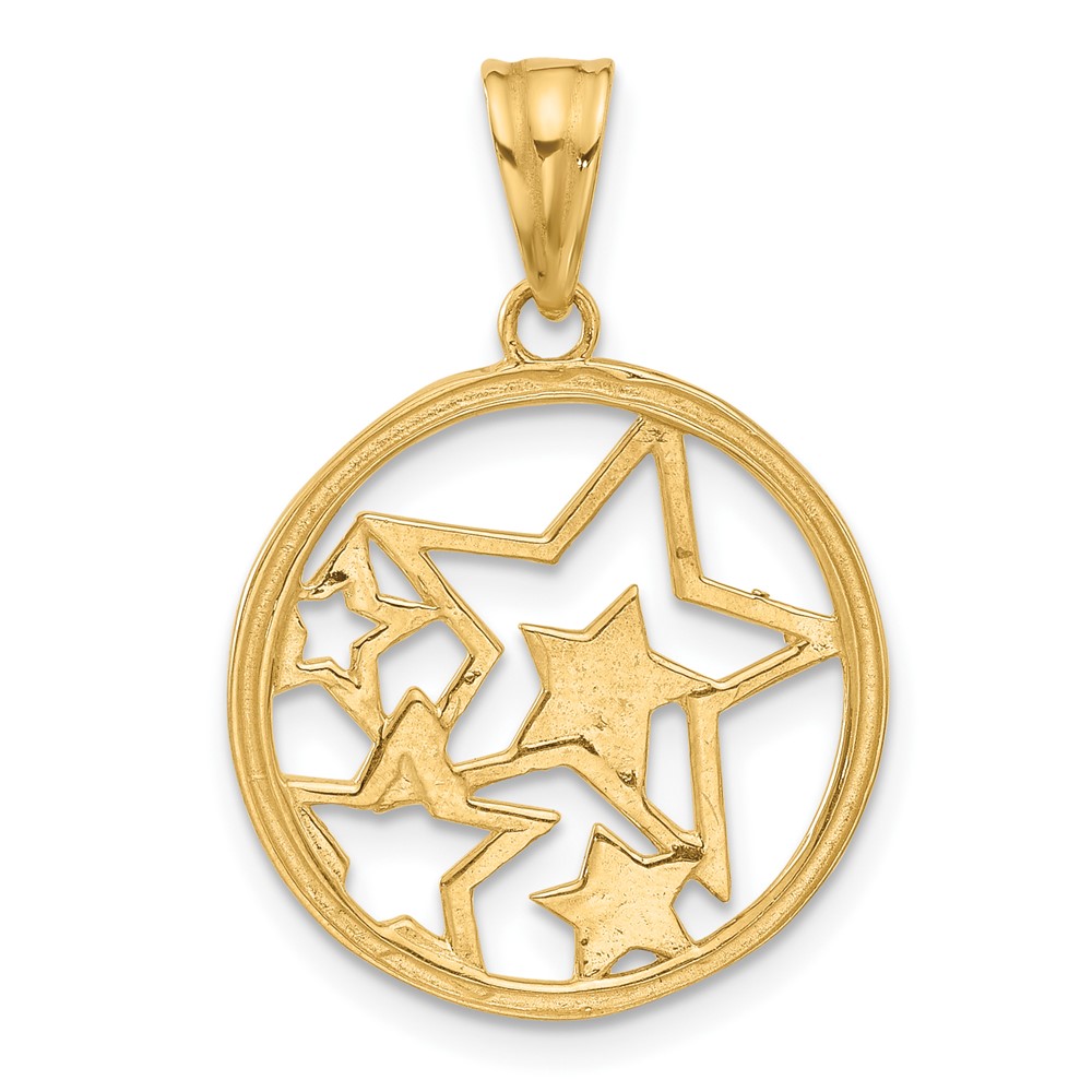 14K and White Rhodium Diamond-cut Stars Pendant