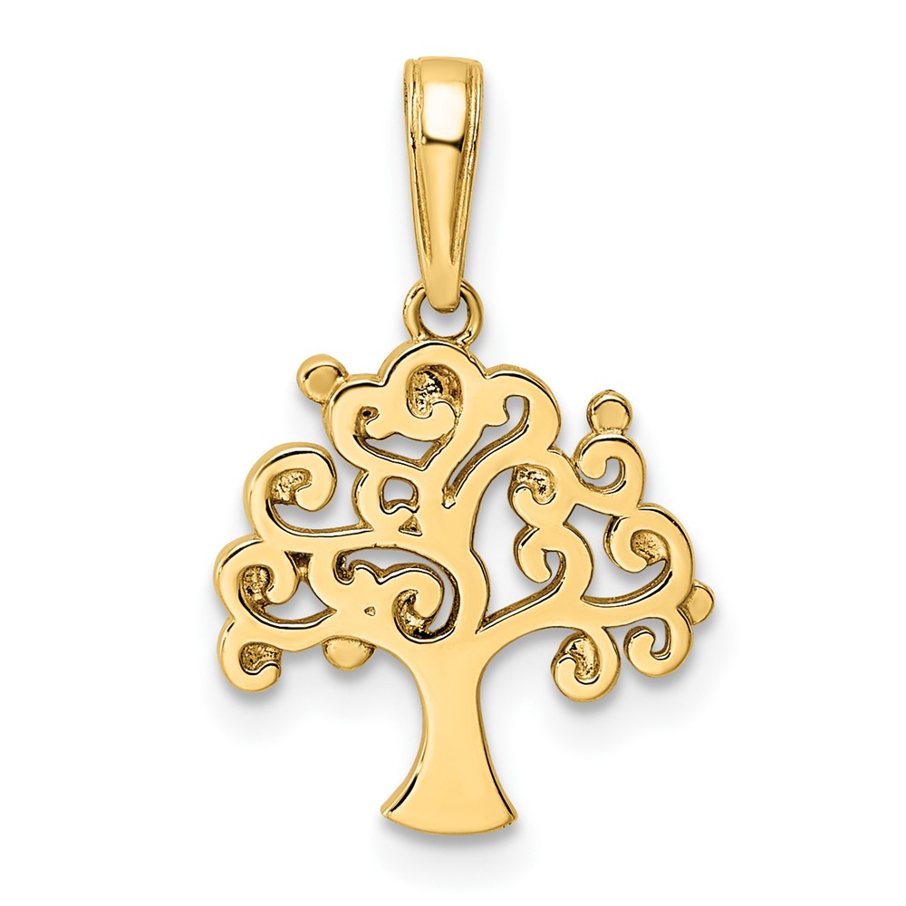 14k and White Rhodium Diamond-cut Tree of Life Pendant