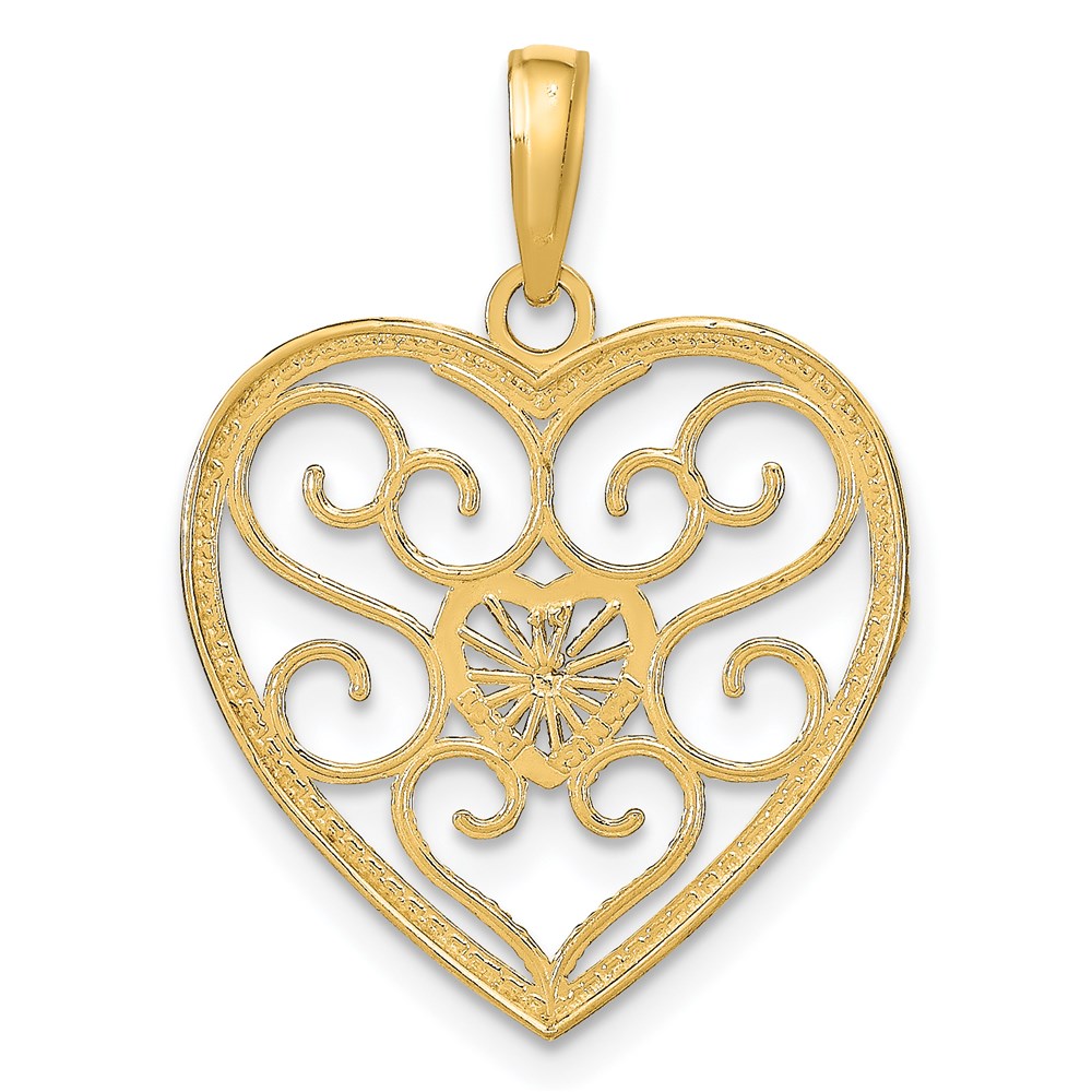 14k and White Rhodium Filigree Beaded Heart Charm