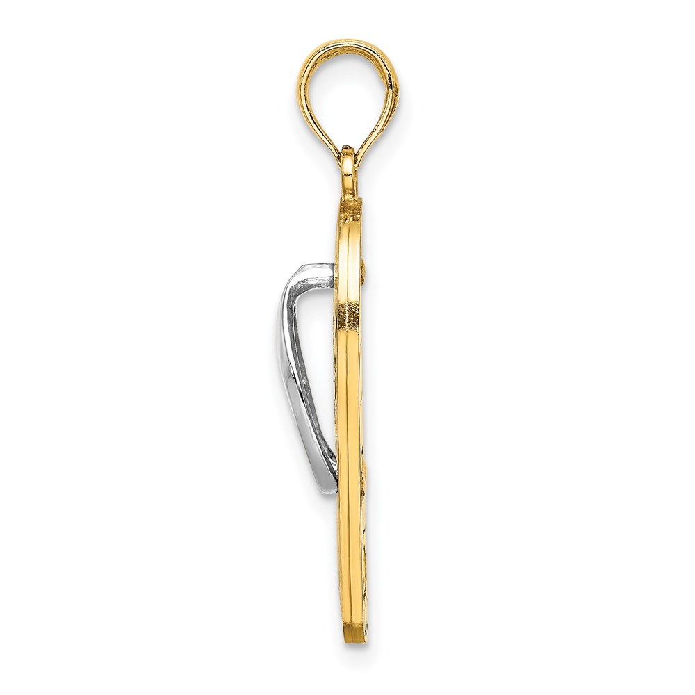 14K and White Rhodium Multi-Colored 3-D Enameled Fuchsia Flowers On Flip-Flop Charm