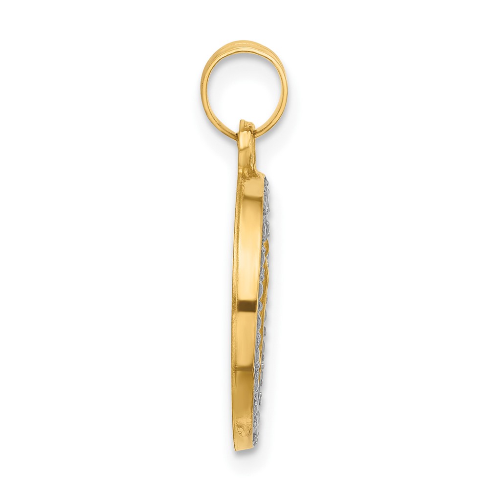 14k and White Rhodium Polished and Satin Hollow Our Lady of Guadalupe Medal Round Pendant