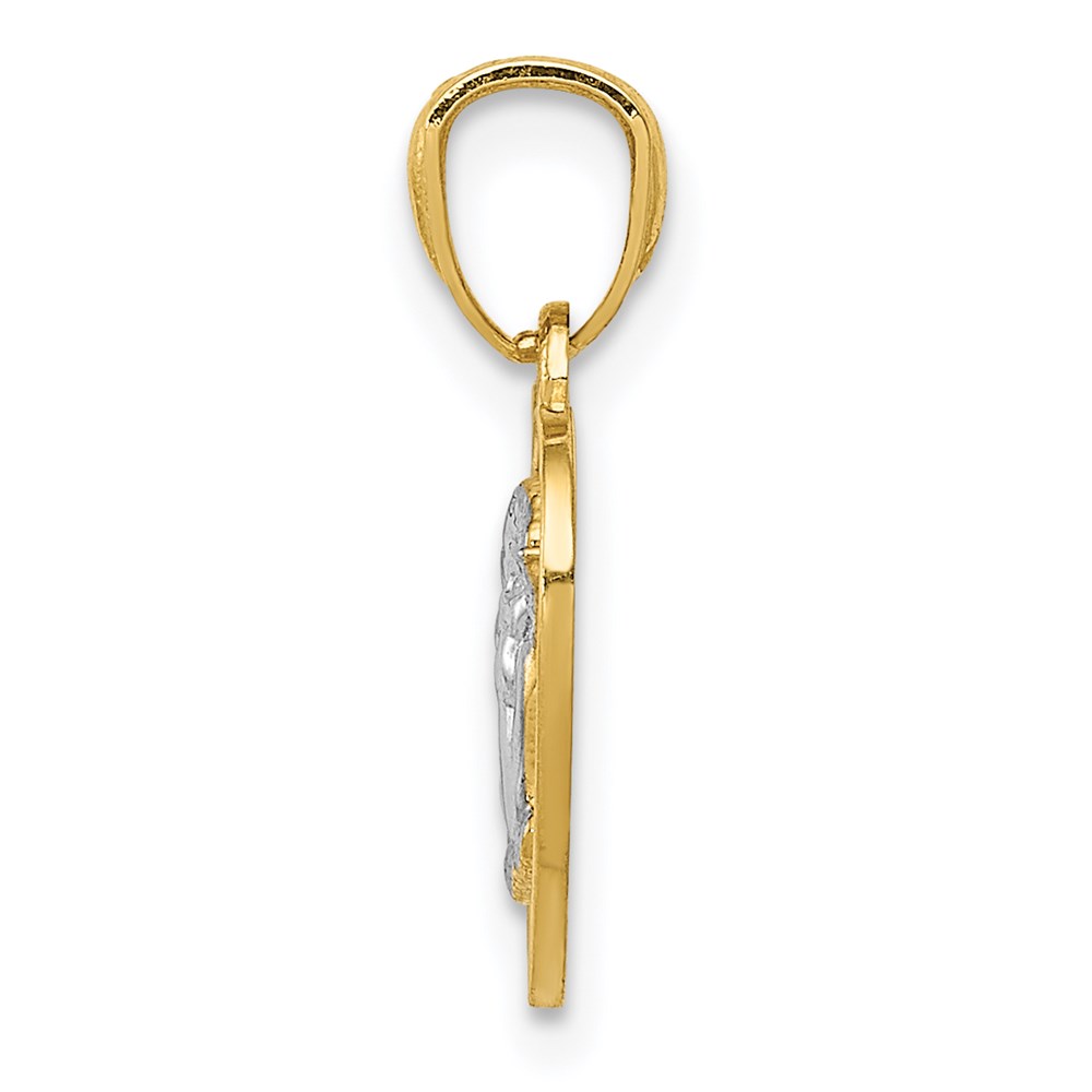 14k and White Rhodium Polished Guardian Angel in Heart Pendant