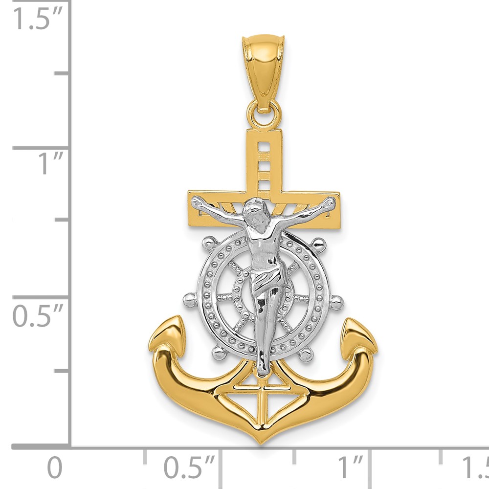 14k and White Rhodium Polished Mariners Crucifix Pendant