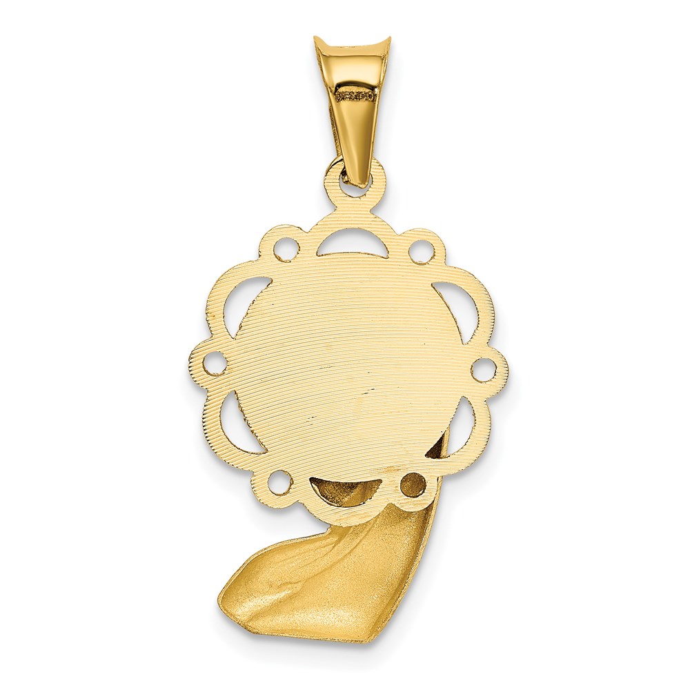 14K and White Rhodium Satin And Polished Diamond-cut Virgin Mary Scalloped Edge Pendant