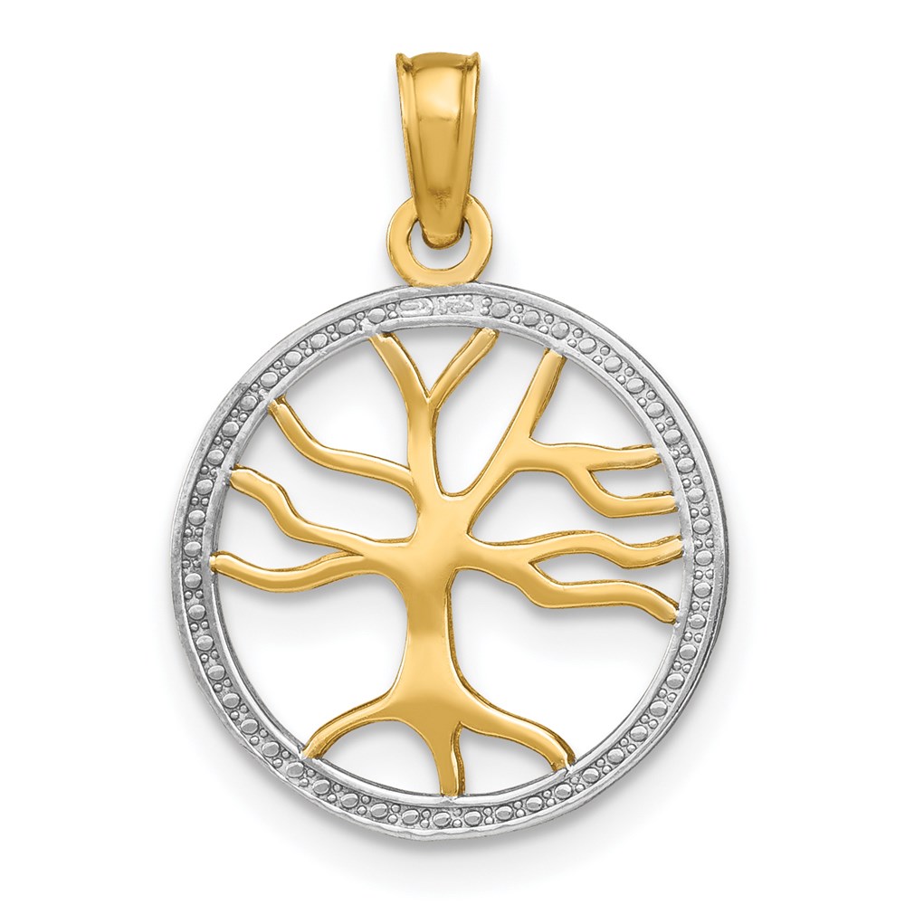 14k and White Rhodium Tree of Life in Round Frame Charm