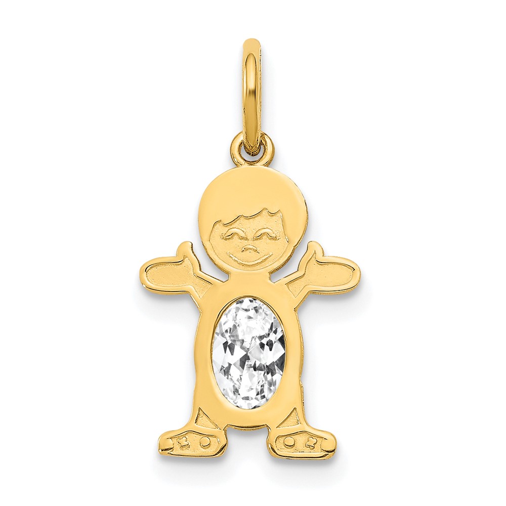 14K Boy Charm 6×4 Oval Genuine White Topaz-April