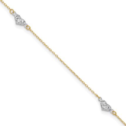 14K Two-tone Three Hearts and Diamond-cut Beads Plus Extender – Total Anklet