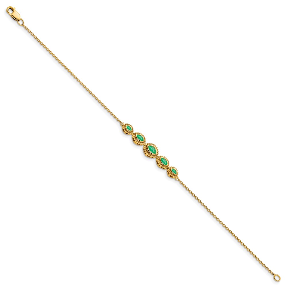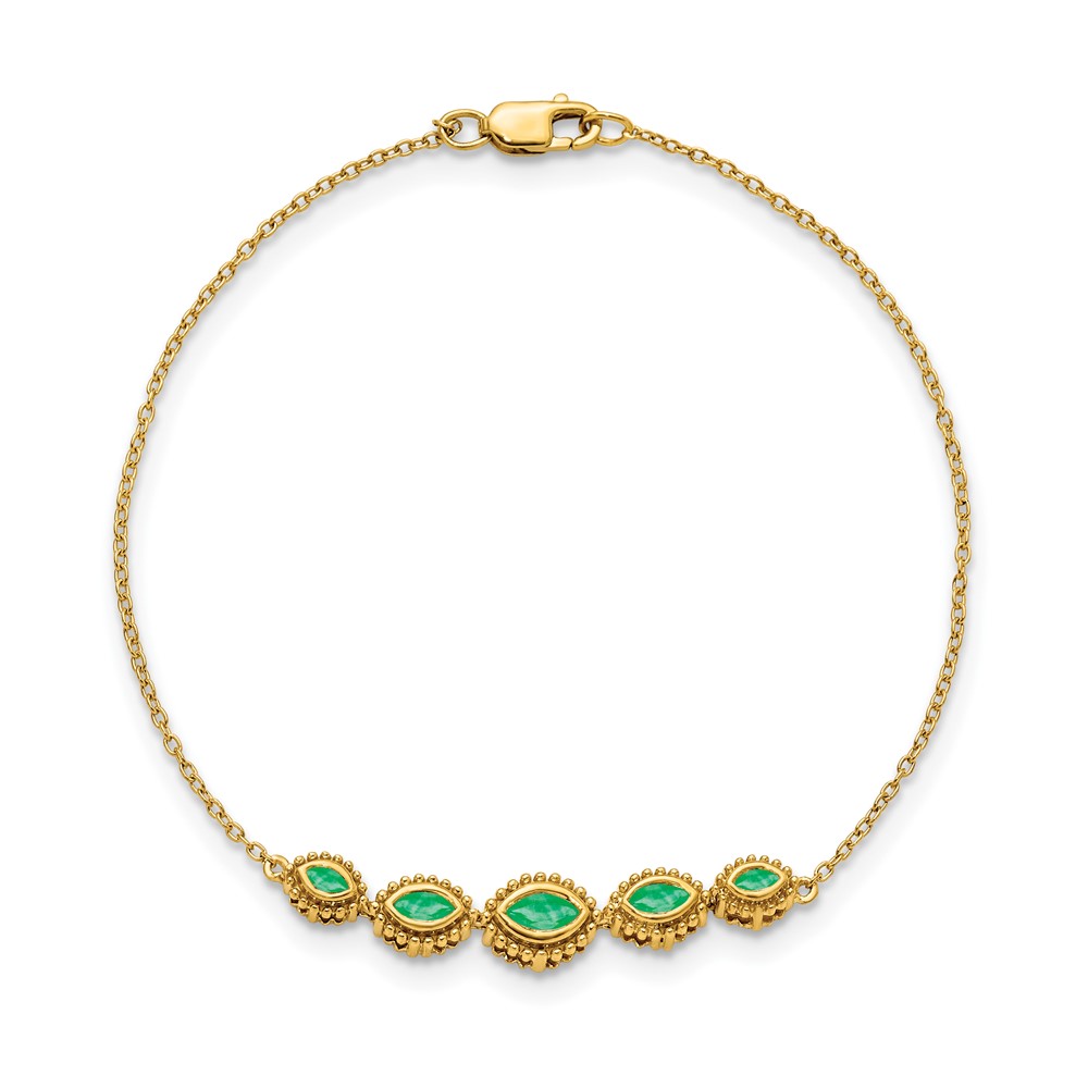 14k Complete 5-Stone Bezel-set Marquise Emerald and Chain 7 inch Bracelet
