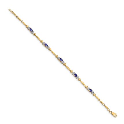 14k Complete Diamond and Oval Tanzanite Heart Design 7 inch Bracelet