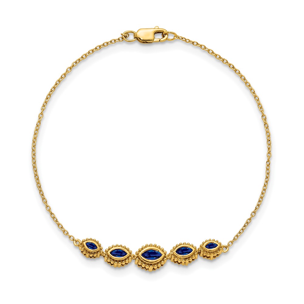 14k Complete 5-Stone Bezel-set Marquise Sapphire and Chain 7 inch Bracelet