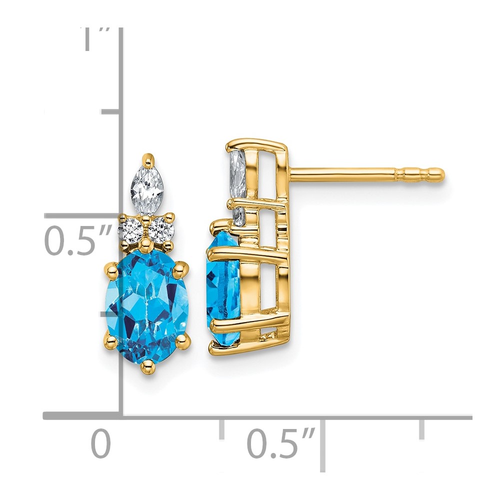 14k Diamond and 7×5 Oval December/Blue Topaz Post Earrings