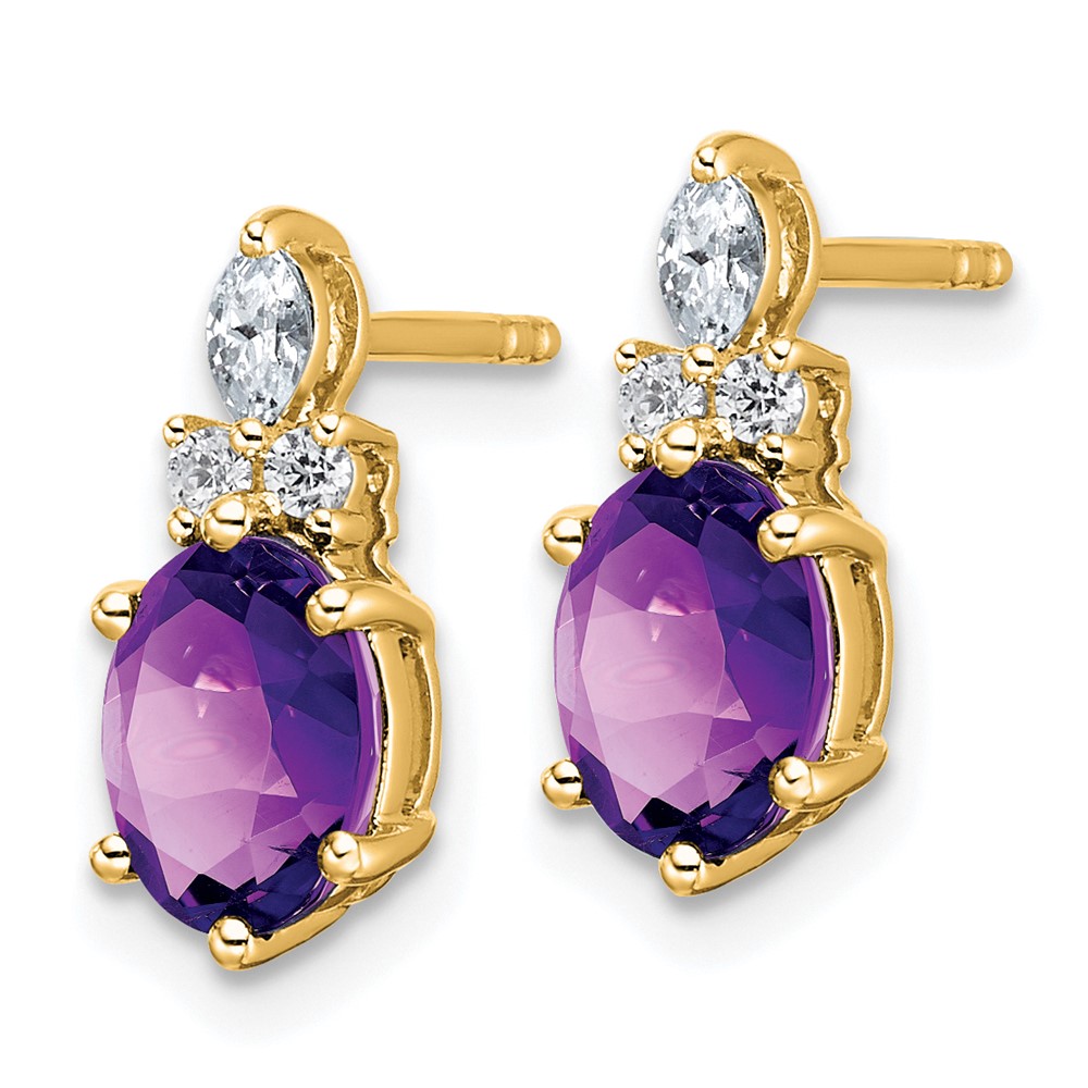 14k Diamond and 7×5 Oval February/Amethyst Post Earrings