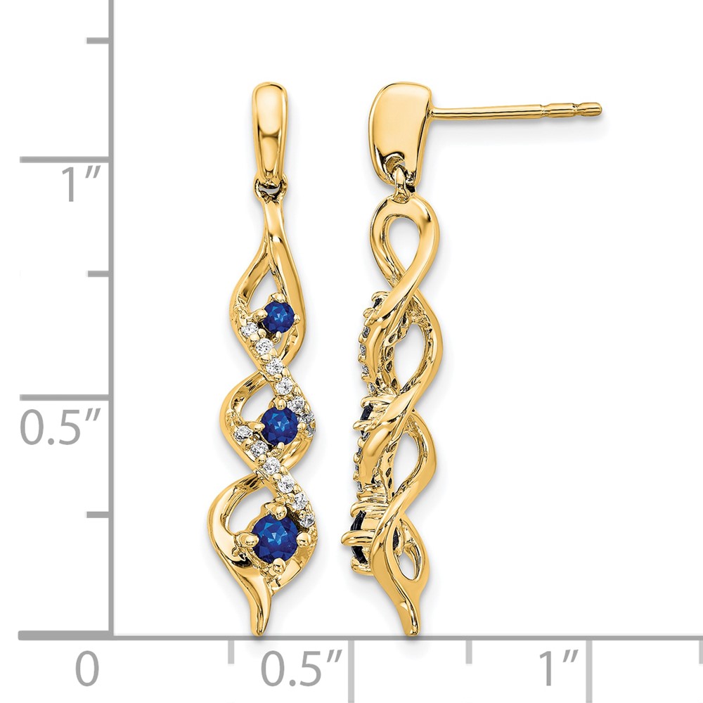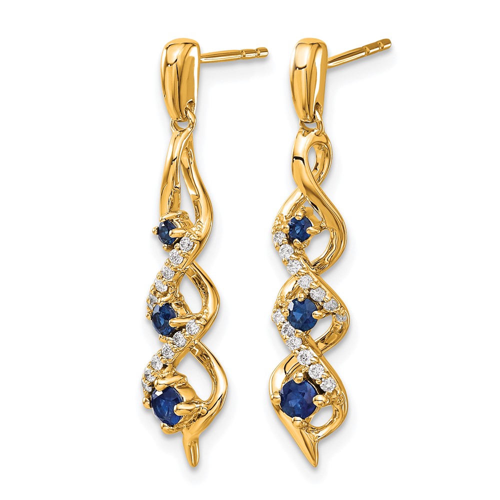 14k Diamond and Blue Sapphire Twisted Post Dangle Earrings