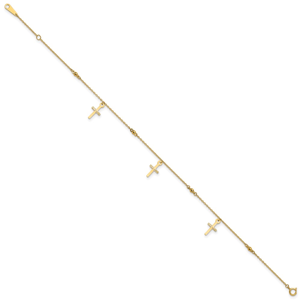 14k Diamond-cut 3 Cross Dangles and Beads Plus Extender – Total Anklet