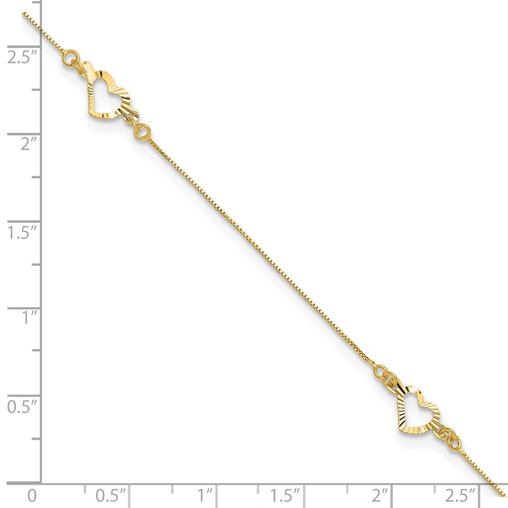 14k Diamond-cut Open Heart 3-Station Plus Extender – Total Anklet