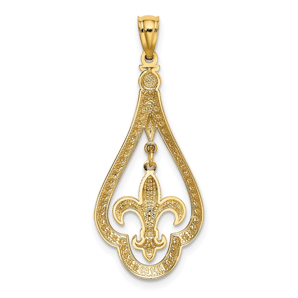 14k Diamond-cut Polished Fleur de Lis Dangle Pendant