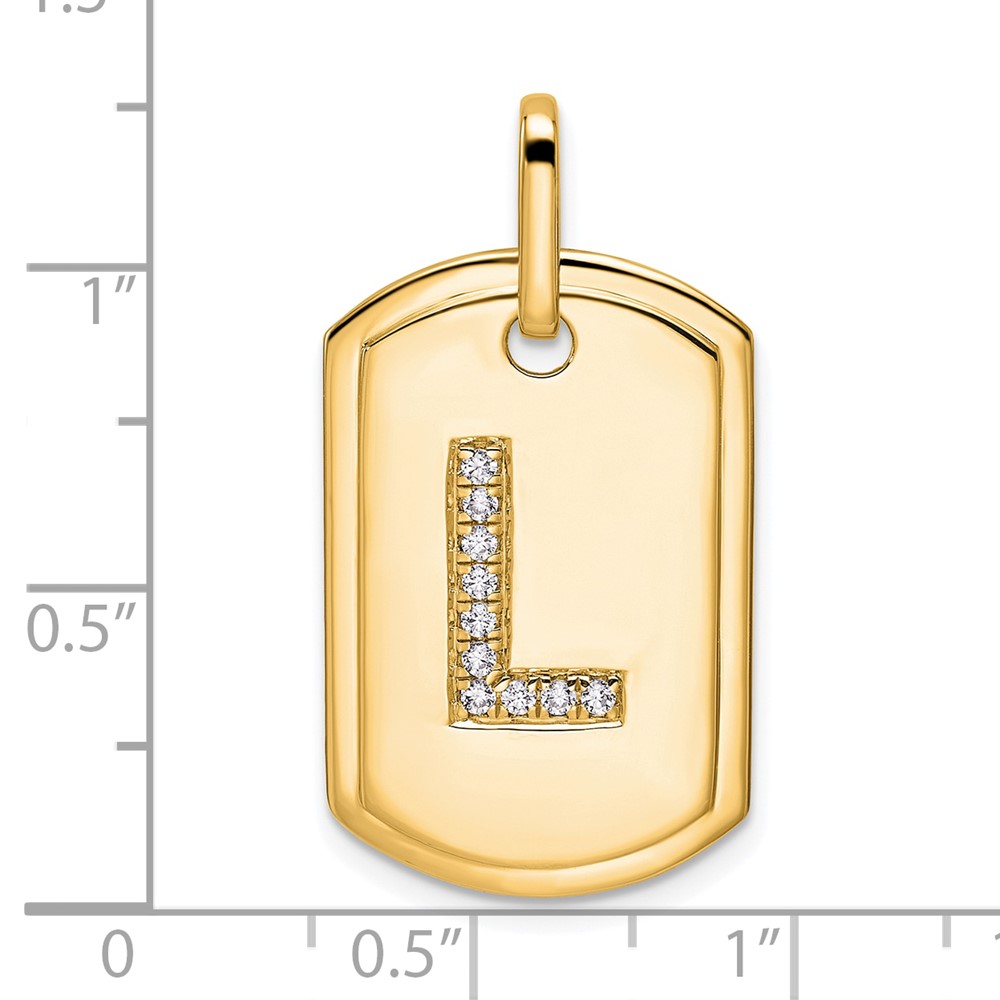 14K Diamond Initial L Dog Tag Charm