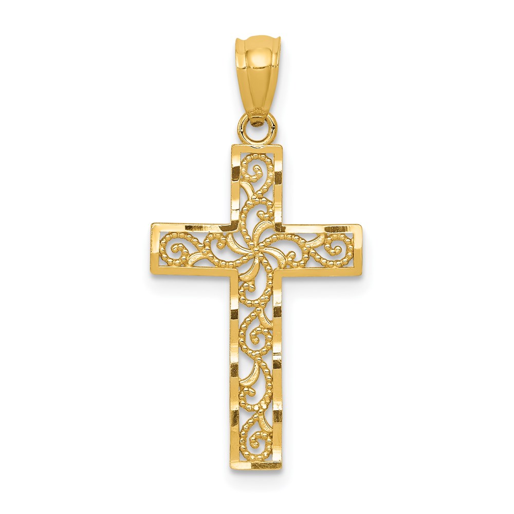 14K White Gold Polished 1/5 carat Diamond Framed Dangle Cross Pendant