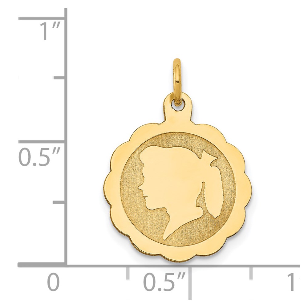 14k Girl Head on .018 Gauge Engravable Scalloped 17x15mm Disc Charm