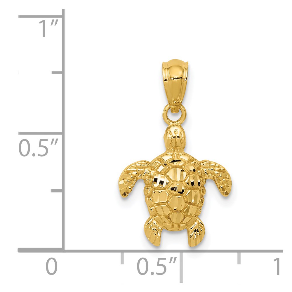14K Gold Polished and Textured Diamond-cut Turtle Pendant