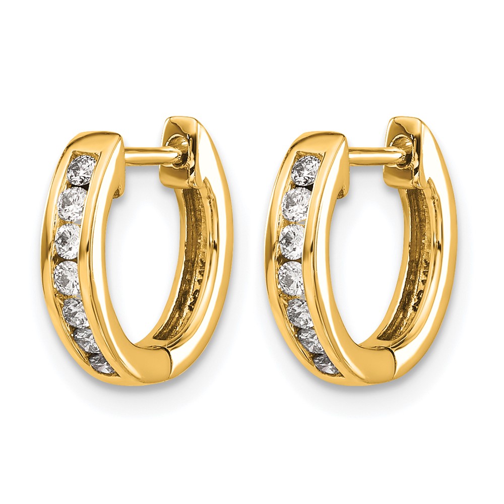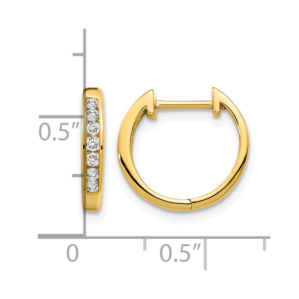 14k Gold Polished Diamond Hinged Hoop Earrings