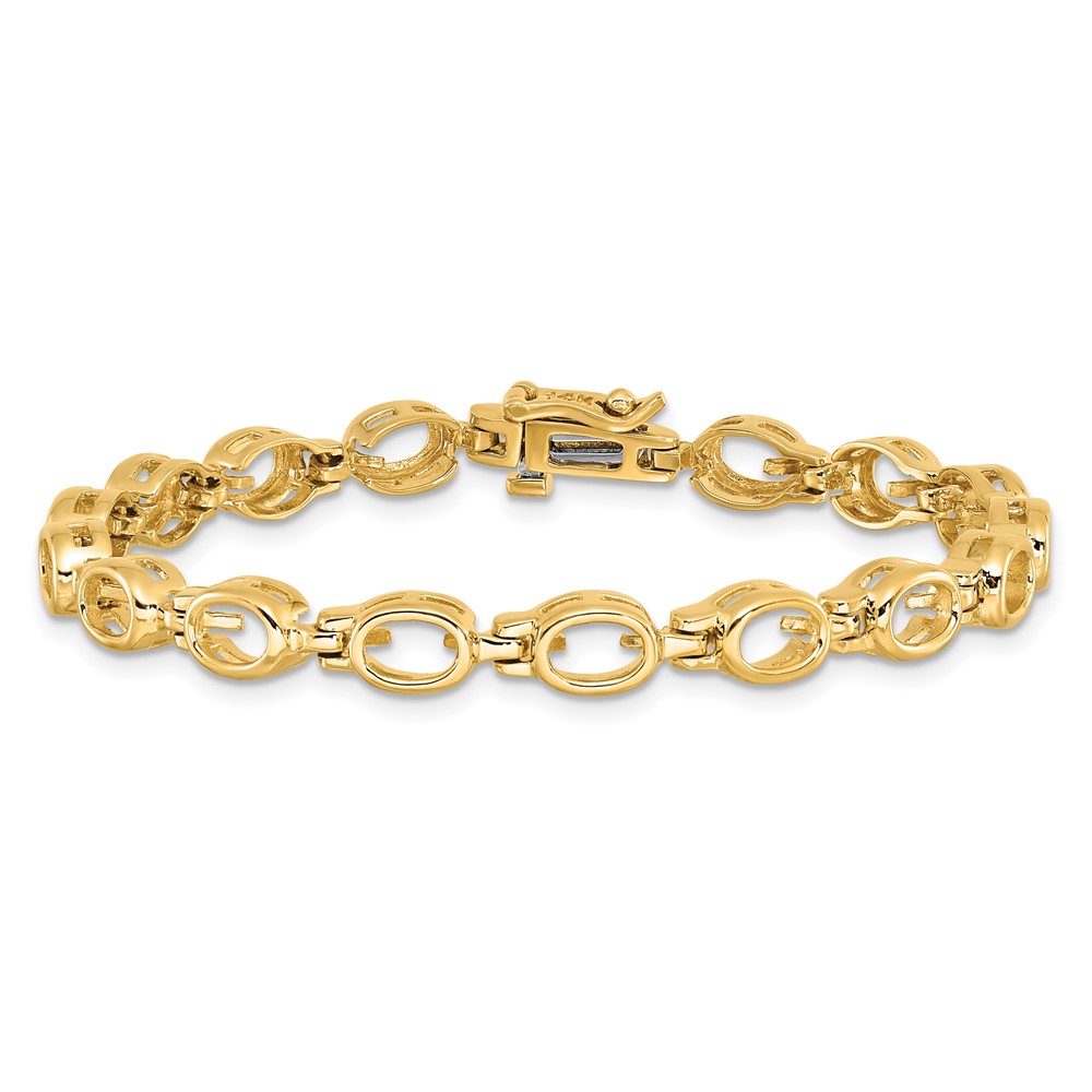 14k Holds 16-6×4 Oval Bezel-set Gemstone 7 inch Bracelet Mounting Only