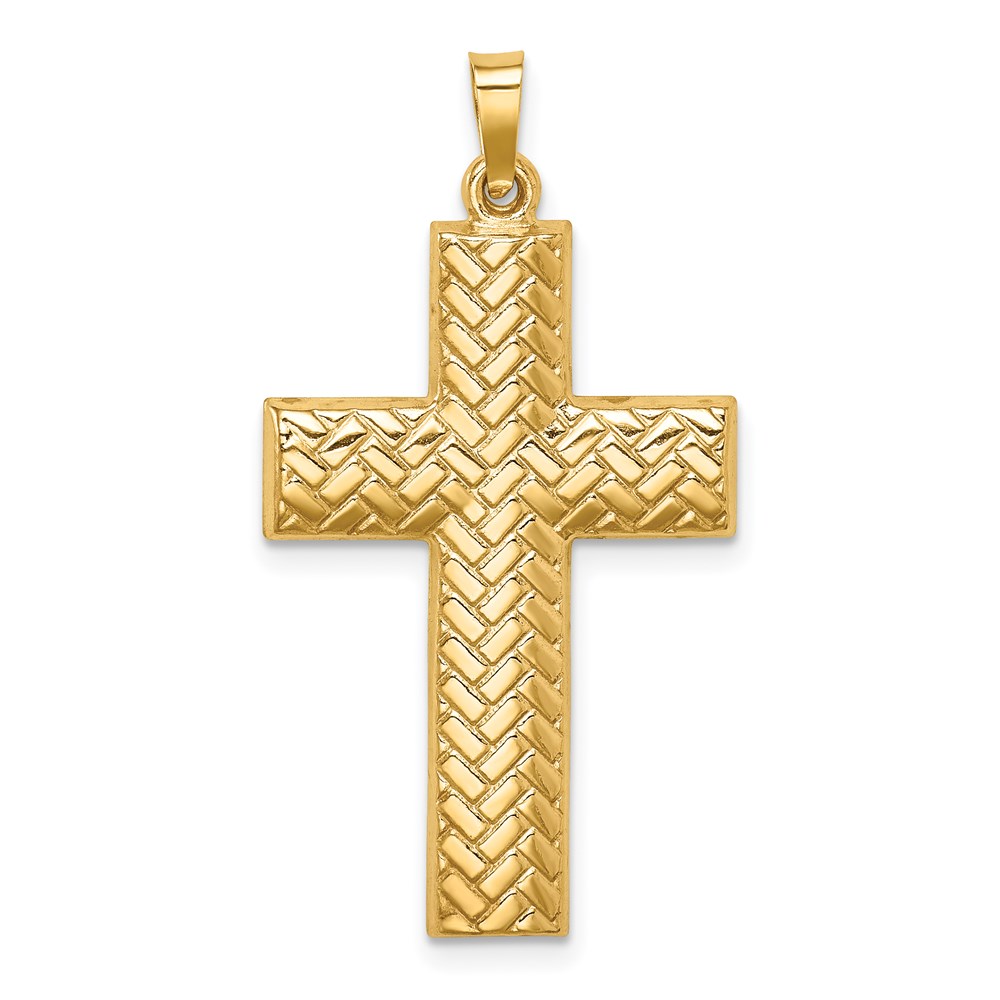 14k Hollow Polished Basketweave Design Latin Cross Pendant