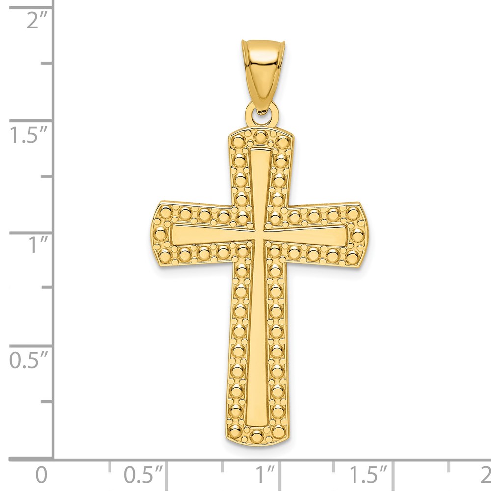 14K Large Polished Beaded Cross Pendant