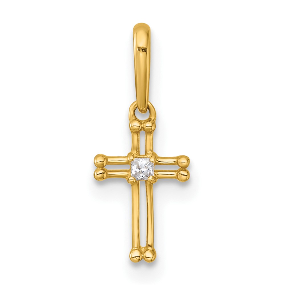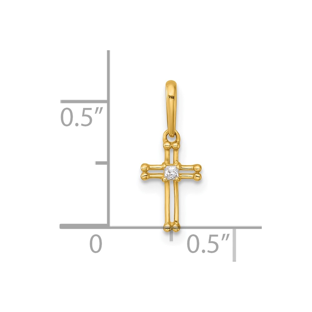 14k Madi K Polished and Beaded CZ Open Cross Childrens Charm / Pendant