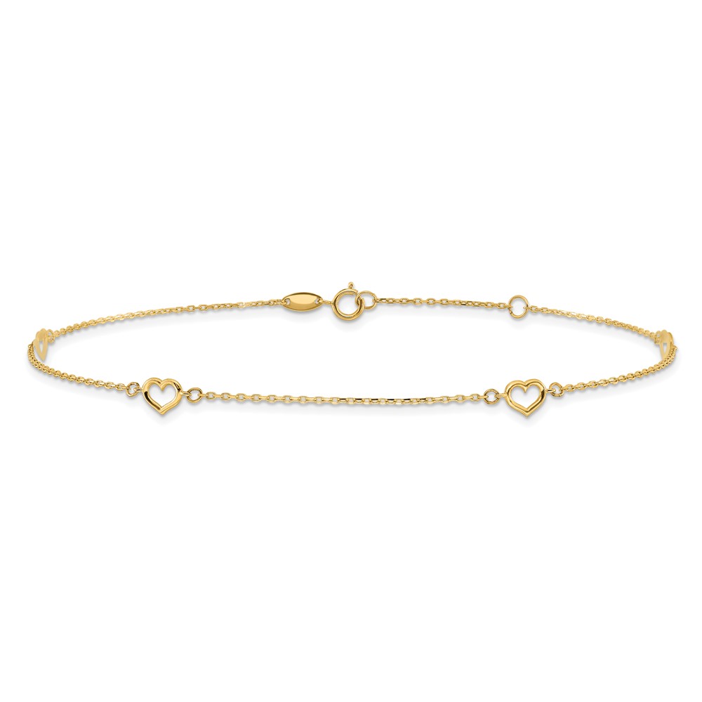 14K Fancy Open Hearts 3-Station Plus Extender – Total Anklet