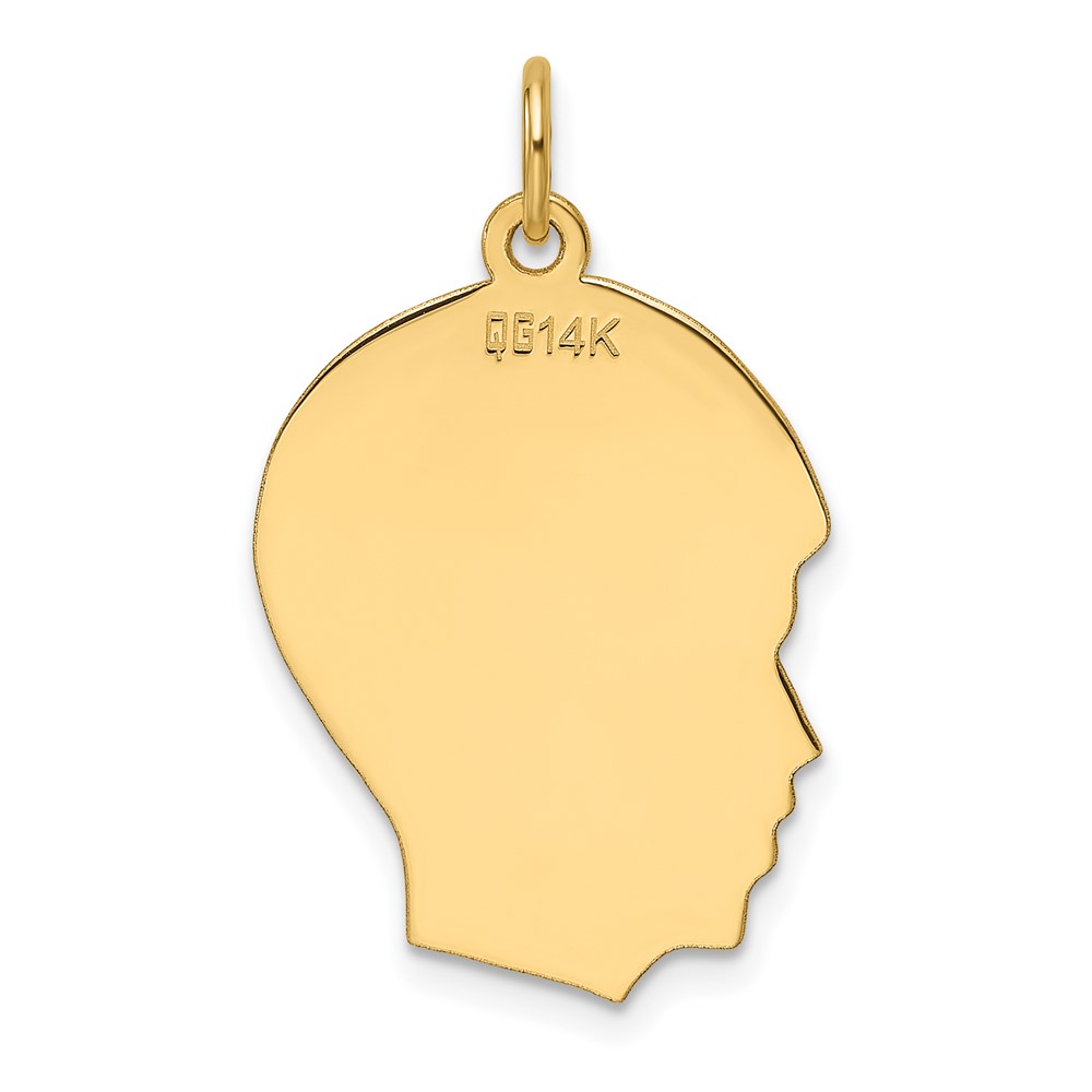 14k Plain Medium .013 Gauge Facing Left Engravable Boy Head Charm