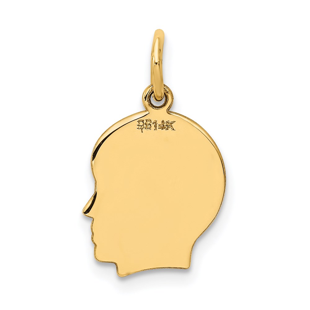 14k Plain Small .035 Gauge Facing Right Engravable Boy Head Charm