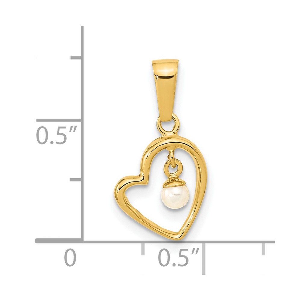 14K Polished 2-3mm Freshwater Cultured Pearl Dangle Open Heart Pendant