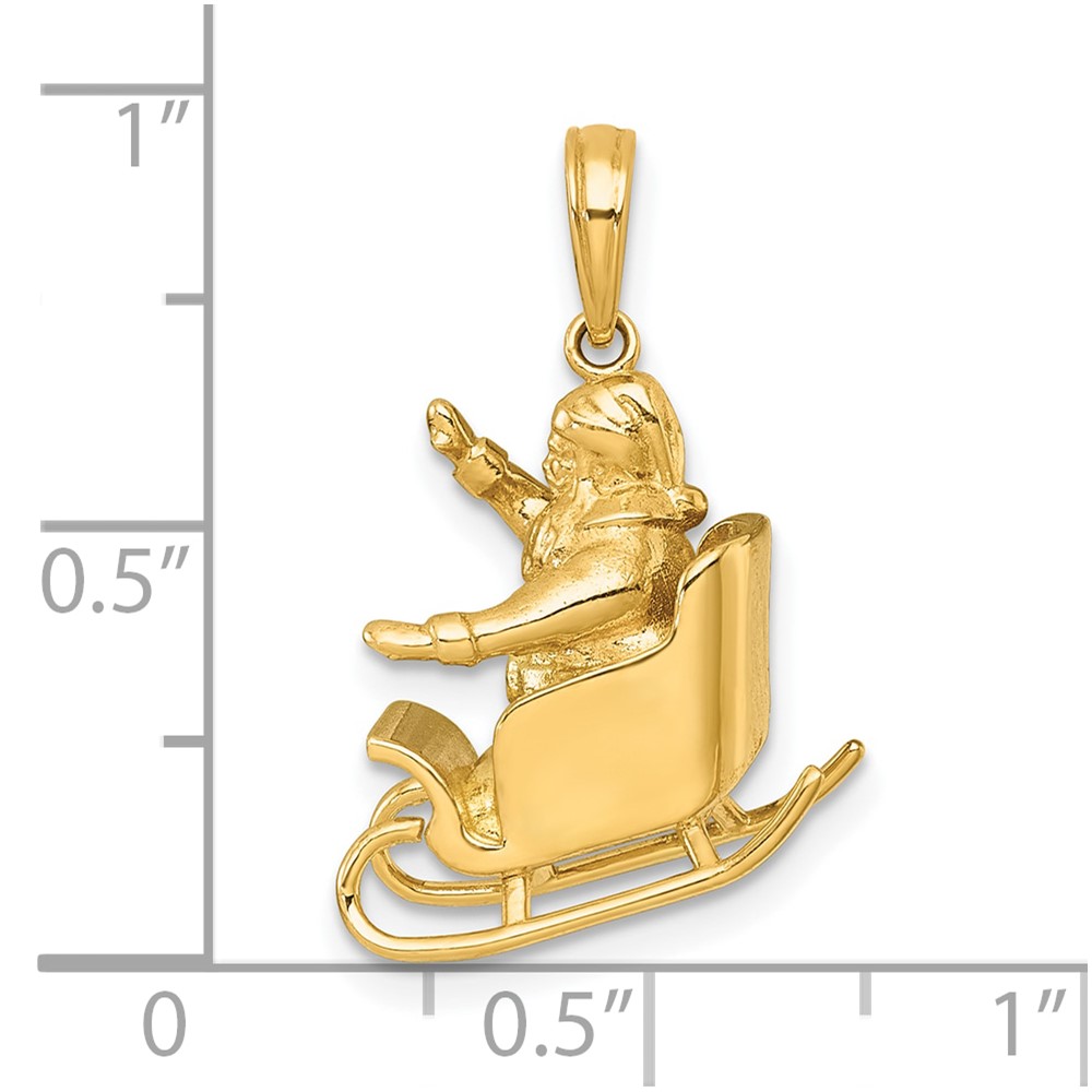 14k Polished 3-D Waving Santa In Sleigh Charm