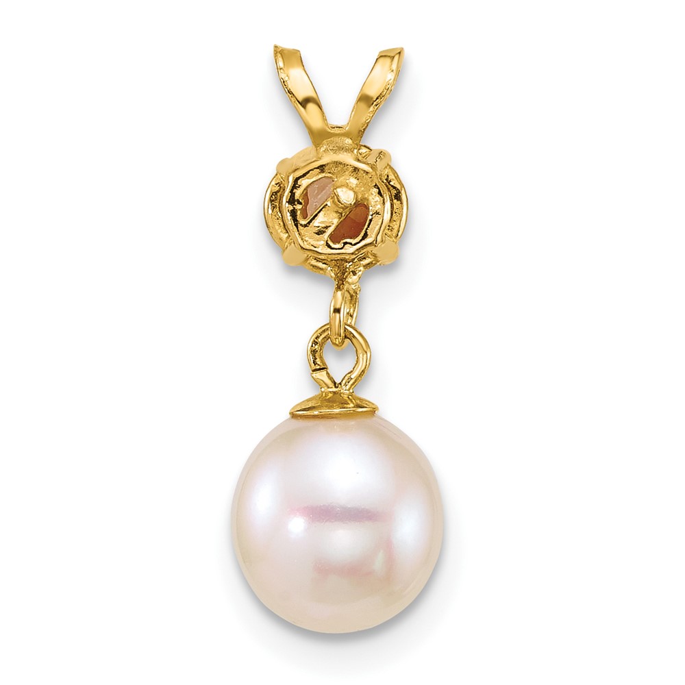 14k Polished 7-8mm Round White Freshwater Cultured Pearl Dangle and Citrine Pendant