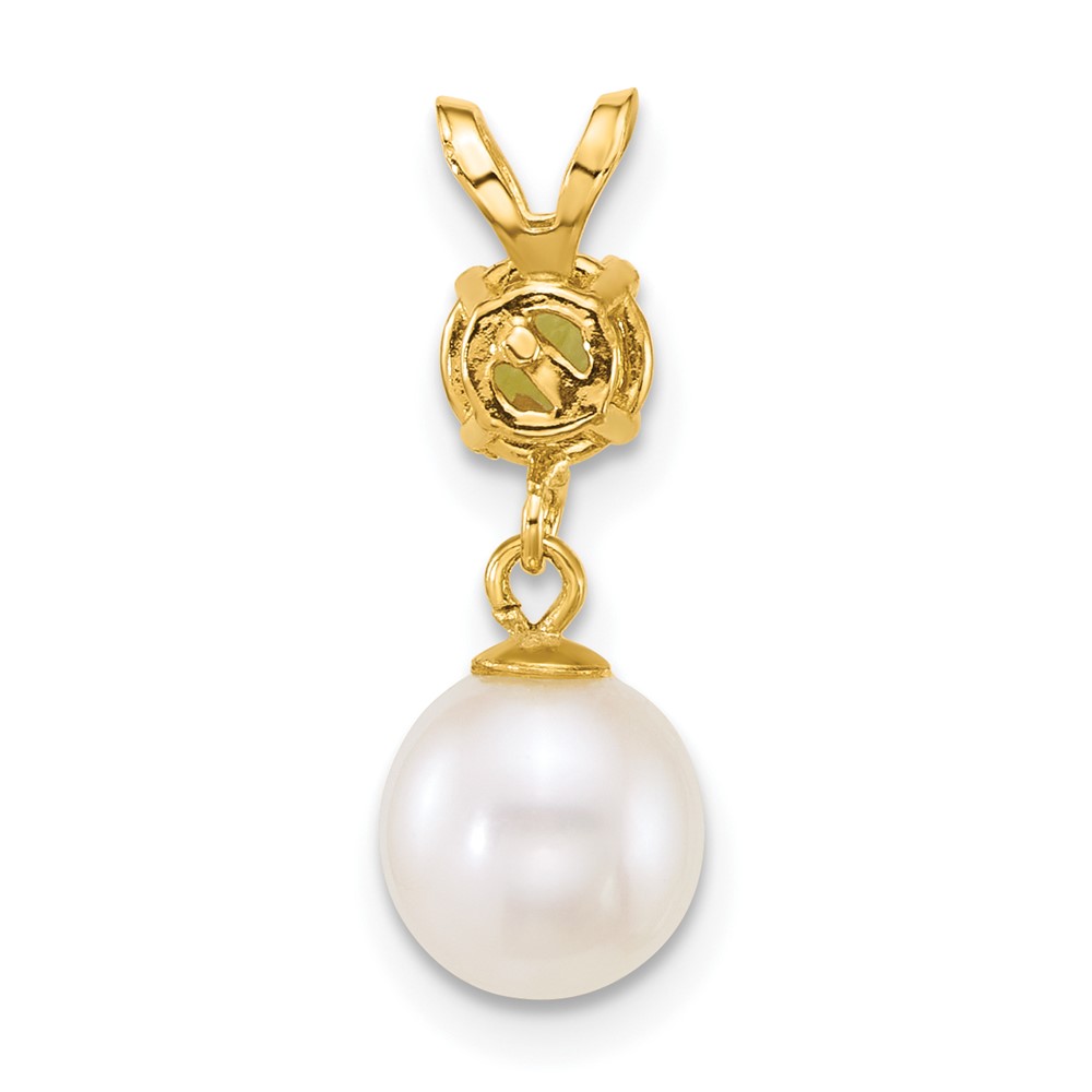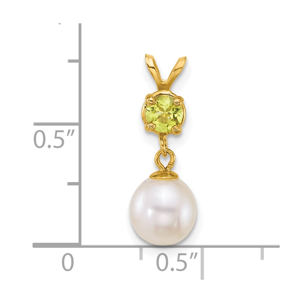 14k Polished 7-8mm Round White Freshwater Cultured Pearl Dangle and Peridot Pendant